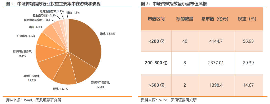 1. 中证传媒指数是紧密追踪上市传媒公司发展的指数。中证传媒选取A股传媒细分方向中50只总市值较大、成交活跃的个股作为成分股,覆盖游戏、影视、广告等传媒主流领域,能系统反映中国传媒行业优质公司全貌,小盘风格显著。