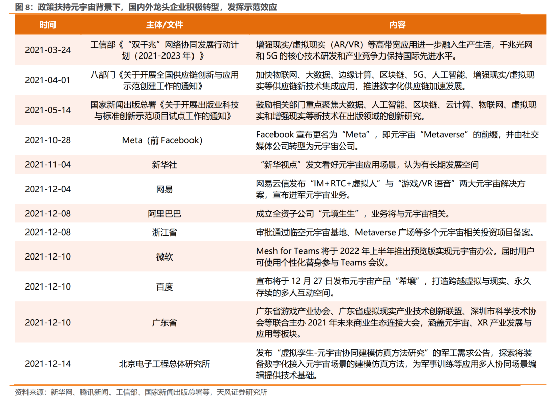 2)估值维度,元宇宙赋能,传媒估值逻辑重塑。近似于智能手机保有量激增后带来2014-2015年的移动互联网红利,2018、2019年以来的5G基础设施建设与硬件设备渗透,或已接近元宇宙等5G产业应用端放量的拐点。当前元宇宙主要与游戏、社交等传媒细分领域结合,Meta、网易、阿里等国内外行业巨头已积极布局发挥示范效应,叠加政策扶持,行业整体估值中枢有较大的上修概率与空间。