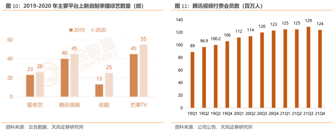 存量市场下,“限薪令”促进平台向优质内容运营转型,付费用户渗透率提升成为第二增长极。2018年10月,广电总局发布《关于进一步加强广播电视和网络视听文艺节目管理的通知》,严控影视节目中演员、嘉宾薪酬占制作总成本比例,鼓励优质内容创作。随后各平台加大自制节目投入,主要平台自制节目数量逐年递增,现象级作品频出,吸引用户为优质内容付费。在活跃用户数趋于稳定的背景下,付费会员渗透率稳定增长,会员收入成为头部平台的主要收入增长来源之一。