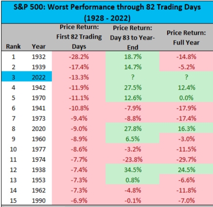 美国权益市场上,今年前4个月,标准普尔500指数下跌了13%,这是自1939年以来最糟糕的开局。但道琼斯工业平均指数下跌9.2%,是2020年以来最糟糕的情况。而纳斯达克综合指数,今年前四个月下跌17%,是有记录以来最糟糕的一年的开始,可以追溯到1971年。