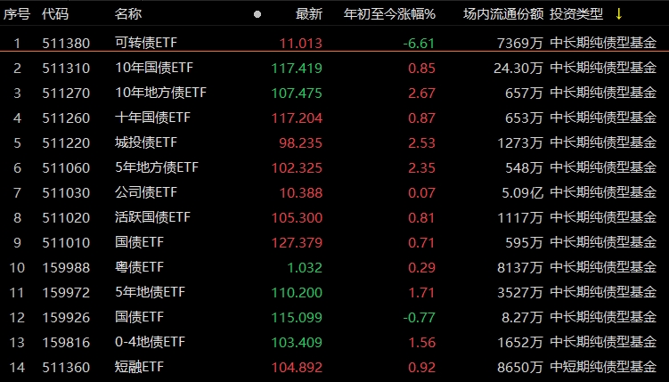 在国内债券ETF市场上,除波动性较大的可转债和份额较小的国债ETF之外,其余债券类ETF均取得正收益。