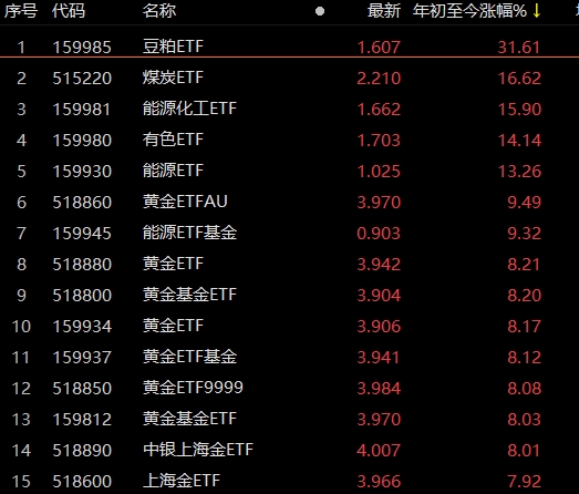 商品成为赢家:中国豆粕ETF排名第一,美国天然气ETF排名第一