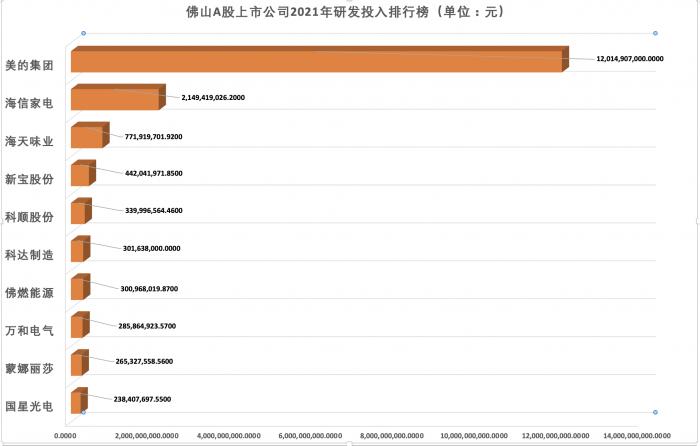 (佛山A股上市公司2021年研发投入排行榜 高慧超制)