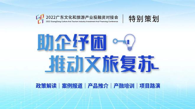 “助企纾困在行动”专栏:为配合做好当前文旅行业助企纾困工作,依托2022广东文化和旅游产业投融资对接会平台,特别策划培训、传播、路演、对接等系列安排,通过政策解读、案例报道、产品推介、产融培训、项目路演等形式,面向文旅政府主管部门和文旅企业,提供可借鉴的模式、产品、案例等,聚焦推进纾困政策落实及文旅企业创新发展。