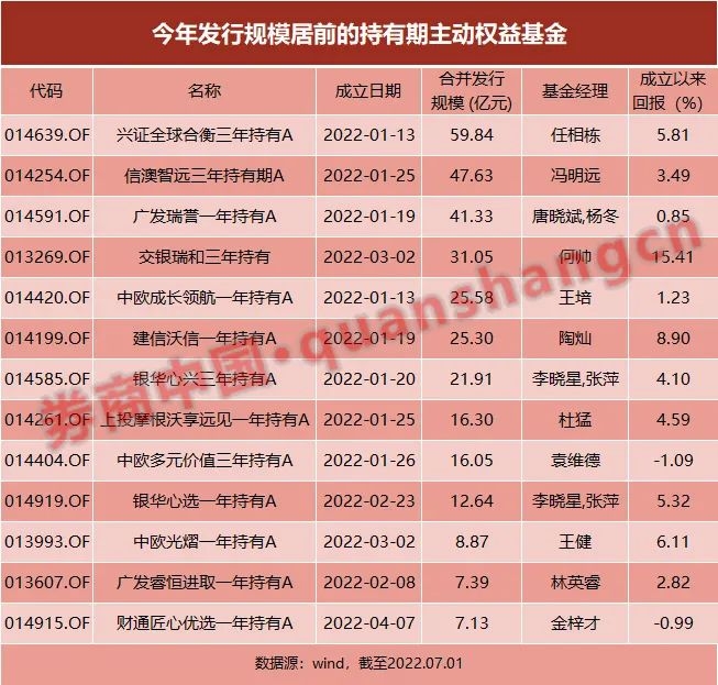 整体来看,今年发行规模居前的主动权益基金多数为持有期基金。