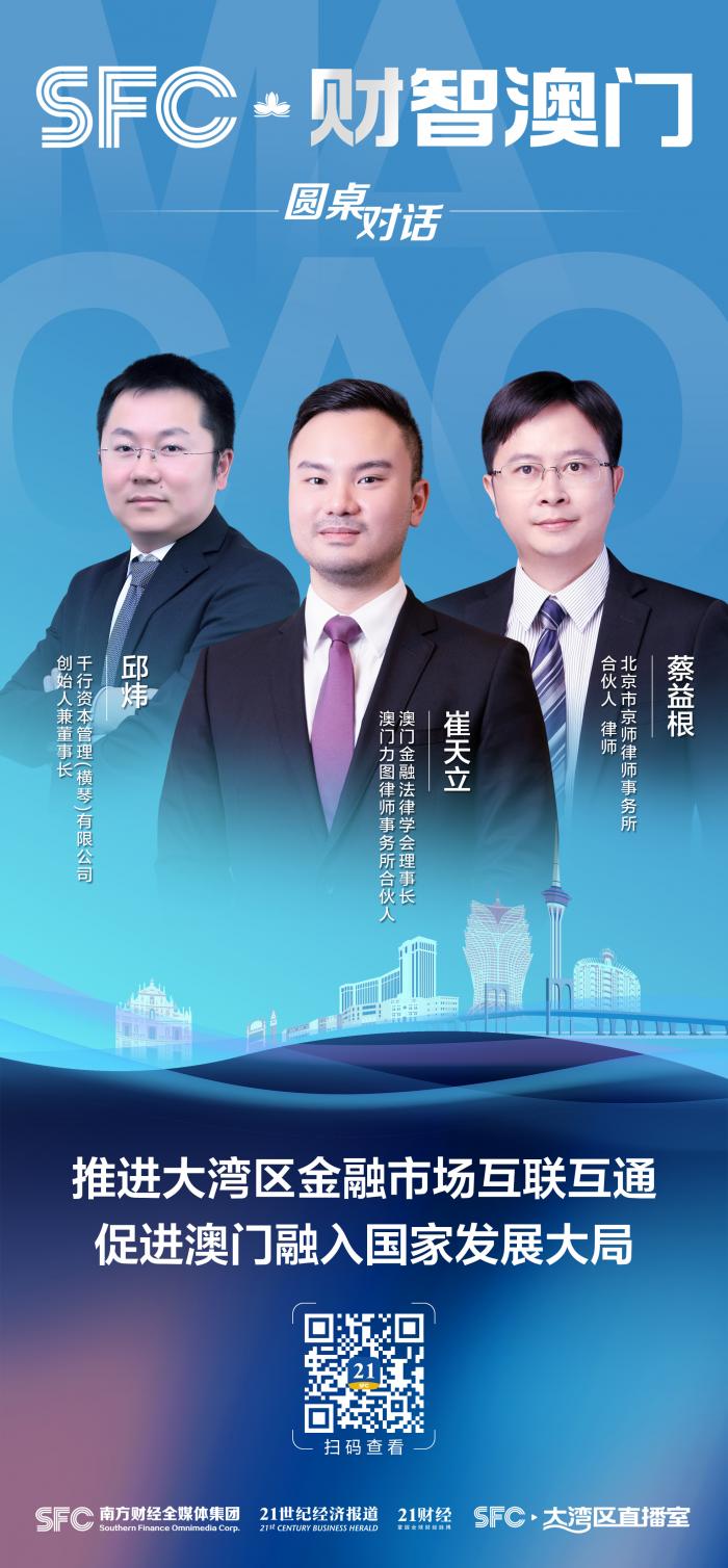 “推进金融市场互联互通,澳门应该发展特色金融产业。”北京京师律师事务所合伙人律师蔡益根向南方财经全媒体记者称,要从传统的银行、债券、房地产等领域扩展到股权投资、创业投资等领域,打通境内包括理财等投资融资的渠道,为境外资金参与到境内企业发展,奠定良好的合作基础。邱炜进一步指出,澳门可以先行发展银行和保险,以加快发挥跨境金融资金流的优势。以投资机构作为下一步发展重点,包括相关的金融服务机构,使港澳地区的资金能够通过银行及其他金融机构进入到横琴、南沙,用于投资当地的企业。