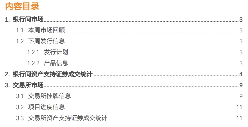 本周银行间资产支持证券成交 126 笔,成交金额 133.65 亿元,基础资产类型包括住房抵押贷款(ABS)、优先有限合伙股份(ABS)、银行/互联网消费贷款(ABS)、信用卡分期贷款(ABS)、信托受益权(ABS)、微小企业贷款(ABS)、同业借款(ABS)、融资租赁债权(ABS)、企业应收账款(ABS)、企业贷款(ABS)、供应链应付账款(ABS)、个人汽车贷款(ABS)等。