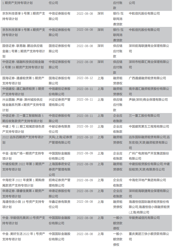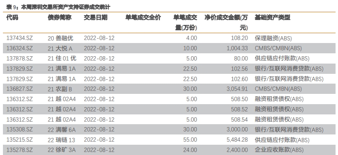 证券研究报告:《本周资产证券化市场回顾——资产证券化市场周报(2022-08-14)》