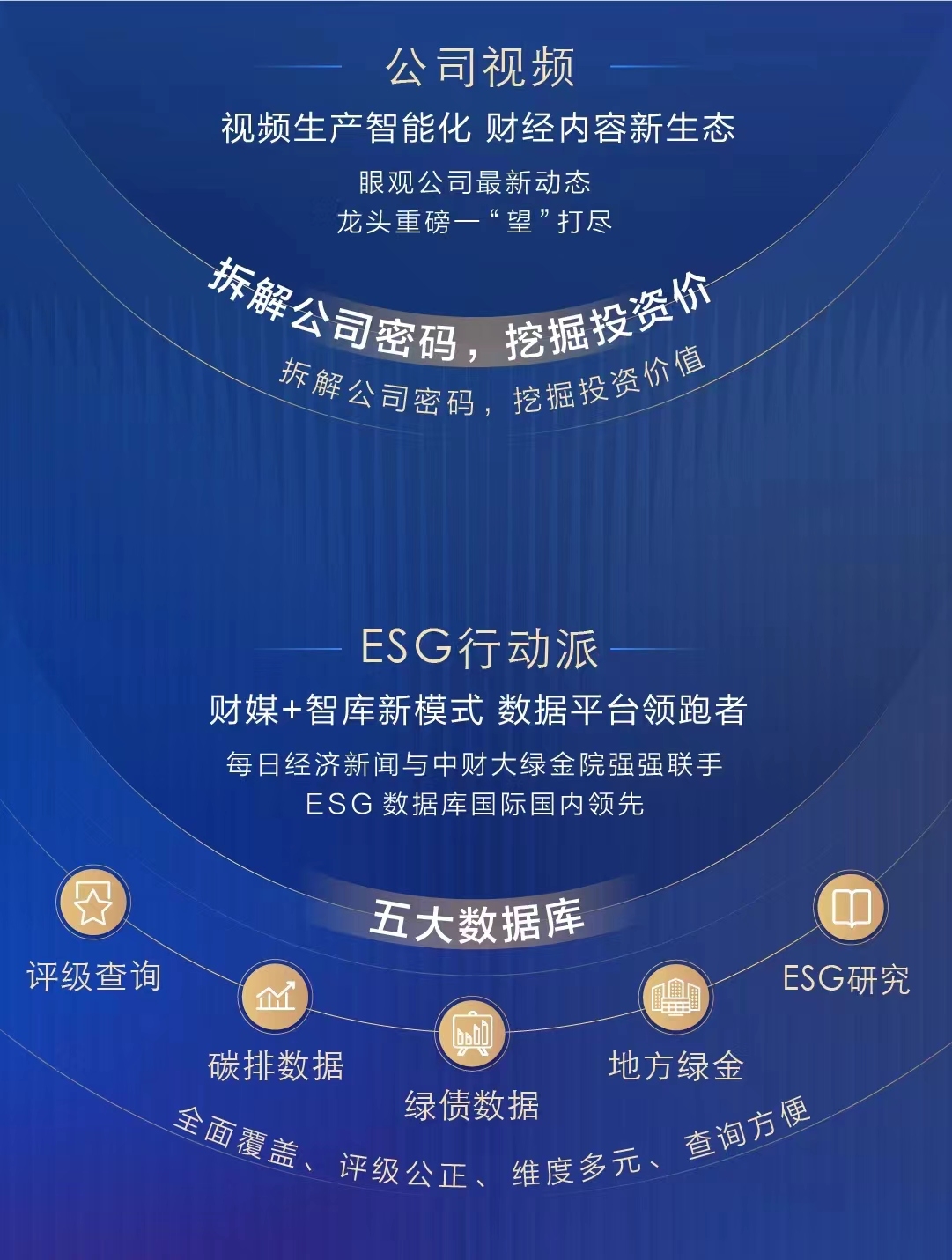 “公司视频”模块用视频报道的形式覆盖中国所有上市公司。利用业内领先的AI技术,已实现视频的秒级生产、秒级发布。模块内集成了全球首个24小时不间断播出的智能财经直播节目——每经AI电视,财经新闻资讯播报中穿插重大新闻事件直播,为用户带来沉浸式观看体验。全新的“公司视频”模块将为财经用户带来更轻松、更易懂的财经资讯体验。