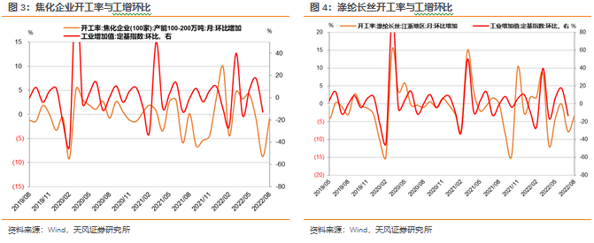 观察高频数据来看,今年2月以来,与工增环比变动具备高度一致性汽车轮胎、焦化以及涤纶长丝开工率环比数据在8月整体呈现为走平或小幅改善。总体而言,8月高频数据中环比改善的指标数较7月有所提升,但焦化企业开工率等上游指标环比仍处于下行区间,生产端结构性问题延续。