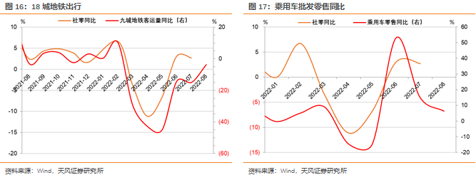 从高频数据来看,30大中城市商品房成交面积同比、18城地铁客运量同比在8月均有不同程度改善,对8月社零增速回升形成支撑。
