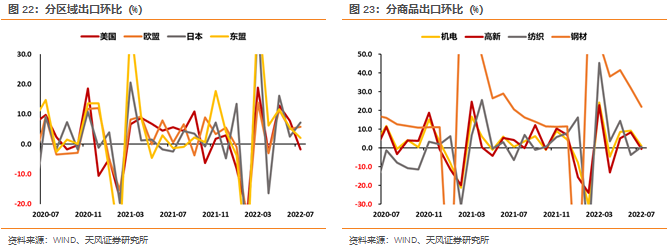 7月我国出口数据超预期,按美元计价,7月我国出口总额3329.64亿美元,环比0.66%,稍弱于季节性水平,同比17.94%,较上月提高0.25个百分点。但对各区域、主要商品出口数据开始出现分化。