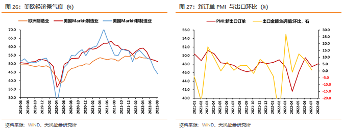 8月美国Markit制造业PMI下行0.9个百分点至51.3%,欧元区制造业PMI继续下行0.1个百分点至49.7%,海外需求整体延续下行态势。随着欧洲能源危机加剧,海外需求预计仍将持续收缩。