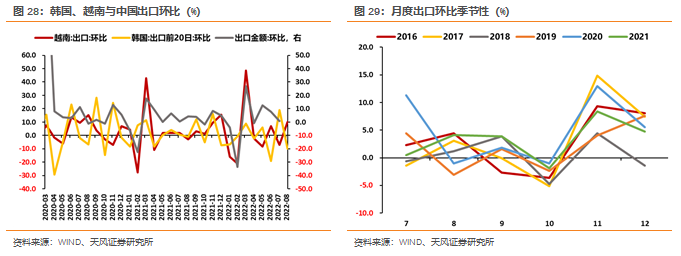 8月韩国前20日出口环比-9.98%,越南出口环比10.08%,数据分化明显。