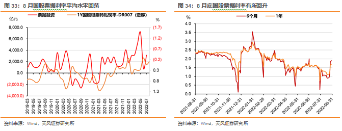 从票据融资来看,一方面8月票据利率平均水平走低,似乎显示票据冲量行为仍然持续、信贷投放情况较差;但到月底时点票据利率水平又有大幅上行。