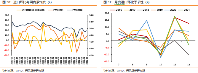 季节性考虑,8月进口环比通常为正。