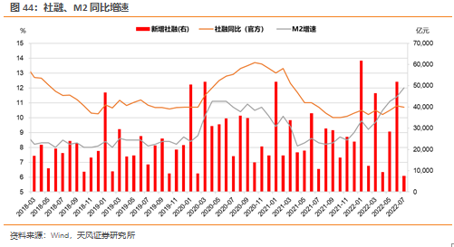 M2增速方面,考虑社融增速下行,结合专项债资金加速落地,预计8月M2增速为12.3%,9、10月份M2同比约12.3%、12.4%。