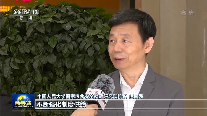 中国人民大学国家粮食安全战略研究院院长 程国强:党的十八大以来,在习近平总书记的亲自推动和亲自部署下,不断强化制度供给,国家粮食安全的四梁八柱制度已经建立起来,一些基础性关键性的制度得到创新和突破,为夯实国家粮食安全基础提供了有力的支撑和保障。