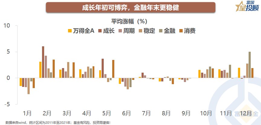 成长年初可博弈,金融年末更稳健。从板块来看,成长在年初表现较好,一月市场下跌时跌幅较小,二月市场上涨时涨幅较大,金融则在年末有不错的收益,四季度涨幅大于其他风格。
