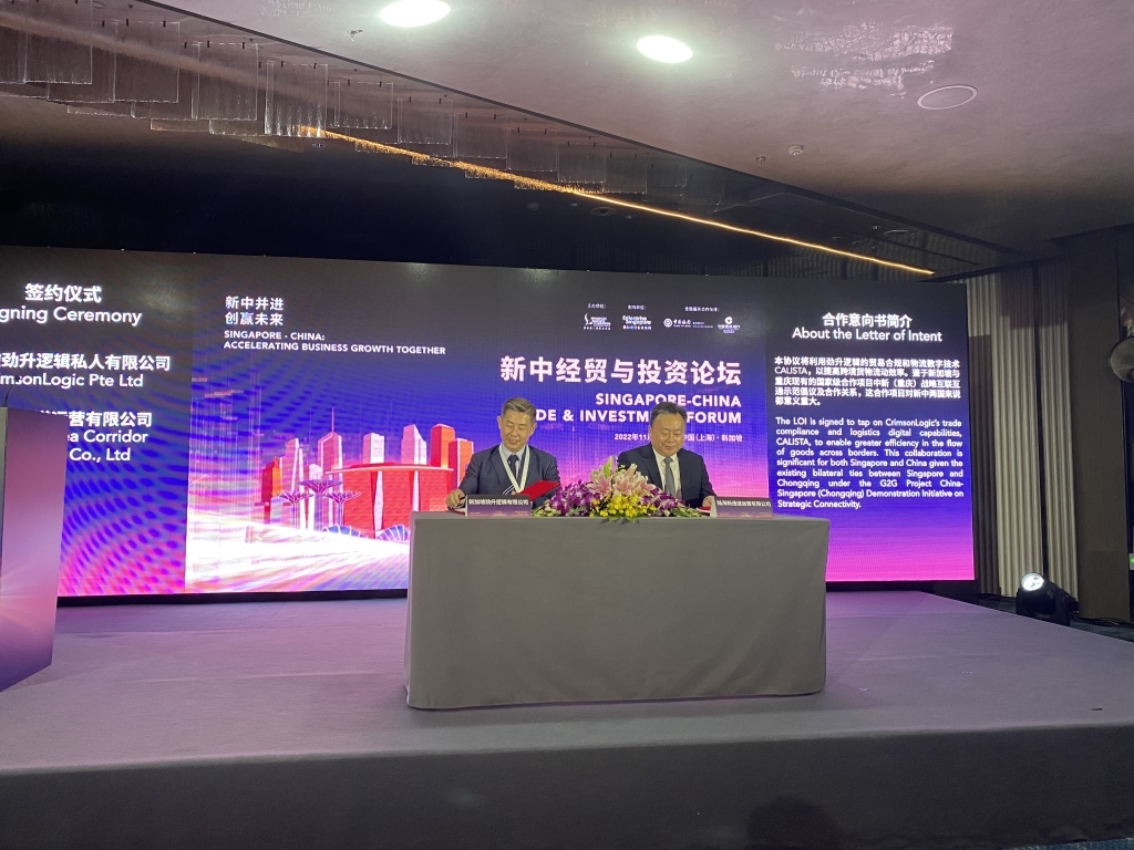 11月7日,在第五届中国国际进口博览会上,陆海新通道运营有限公司和新加坡跨境贸易服务公司劲升逻辑签署合作意向书。双方将共建陆海新通道“数智通道”,助力建设贸易便利、高效智能的陆海新通道,带动通道沿线经济和产业高速发展,做深做强通道运营的集群辐射作用。