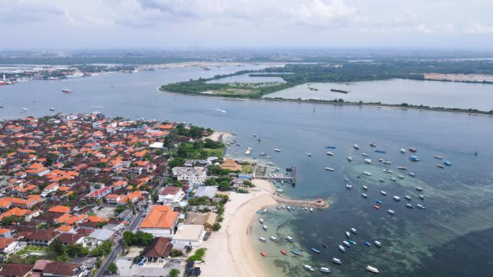 这是11月12日在印度尼西亚巴厘岛拍摄的丹戎伯诺阿海滩风光(无人机照片)。新华社记者徐钦摄