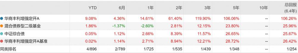 再来看看华商丰利增强定开,这只基金C、A份额的区间业绩回报分别排在了第三、第七位。