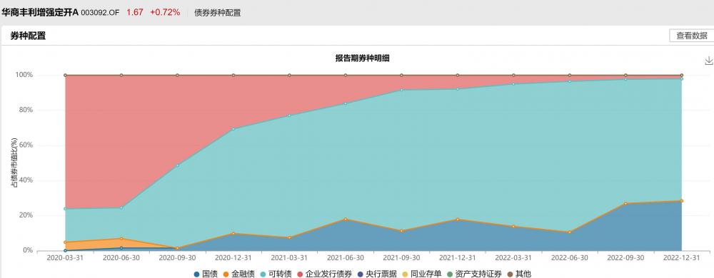 持仓上,以华商丰利增强定开A为例,截至2022年12月31日,其股票仓位为13.53%,债券则为78.54%,其中可转债达80.59%,较上期减少了12.17%。