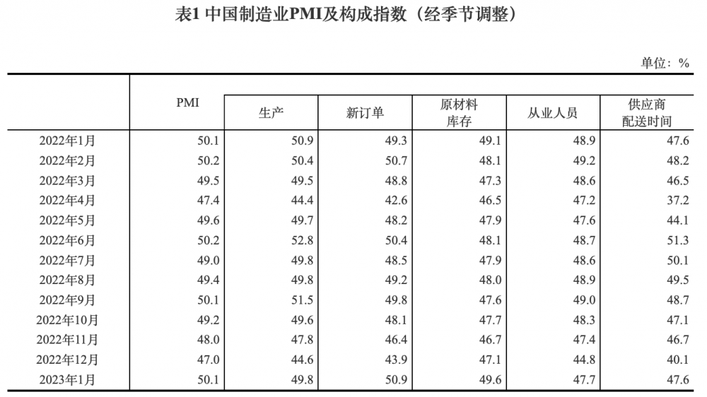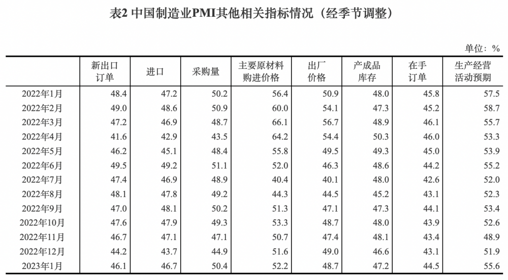 (来源:国家统计局 原标题:2023年1月中国采购经理指数运行情况)