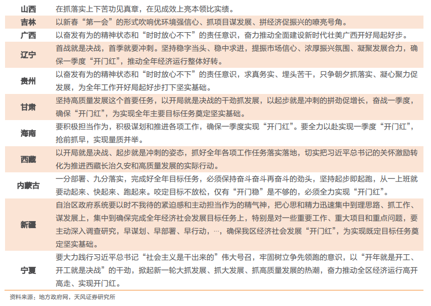 1. 地方政府开年有哪些新表态?