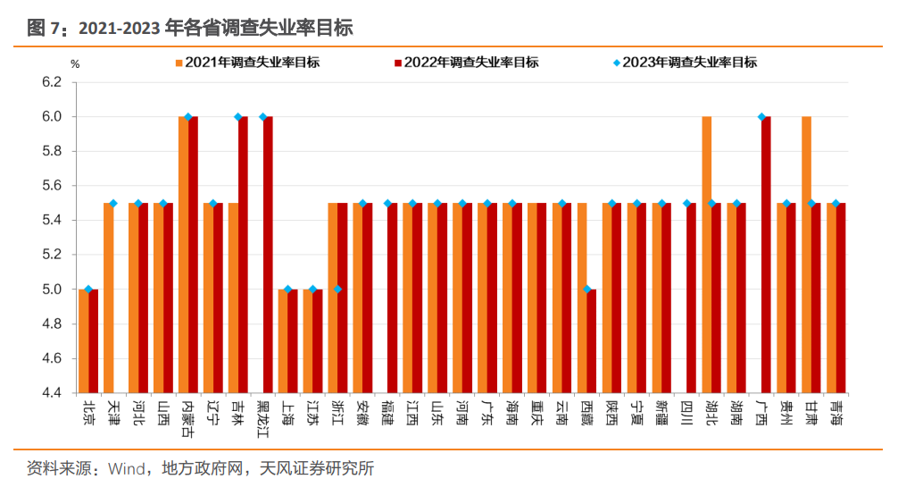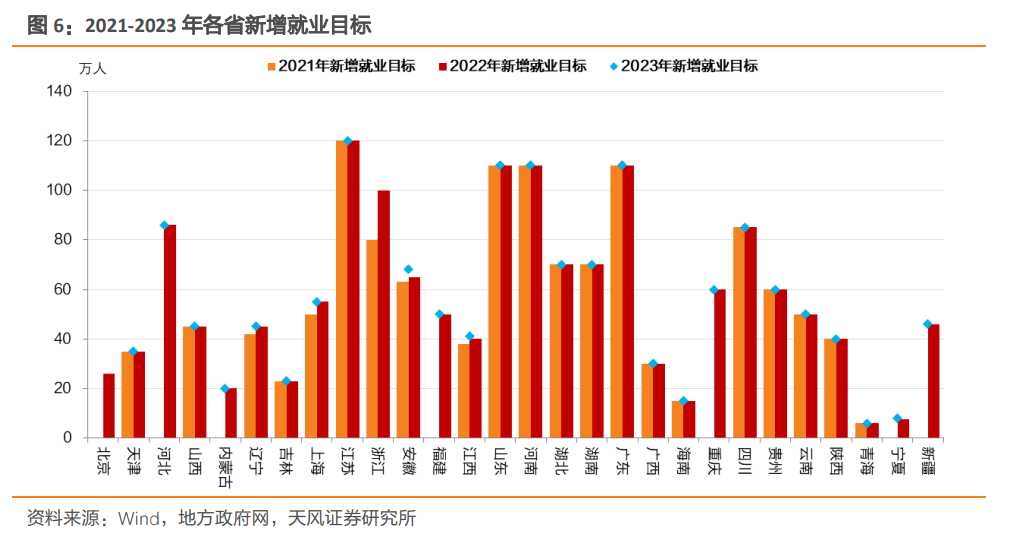 其中,有3个省份(安徽、江西、宁夏)调高了2023年的新增就业目标,浙江省下调了调查失业率目标,预计这些省份的就业压力有所缓解。