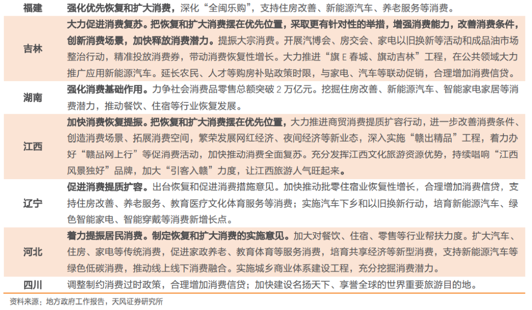 例如,1月28日山东省召开省委理论学习中心组集体学习,提出“要更好发挥消费的基础作用,以稳就业、促增收解决‘不敢消费’问题,以提品质、强引导解决‘不愿消费’问题,以创场景、优环境解决‘不便消费’问题,大力提振消费信心,加快推动消费复苏”。