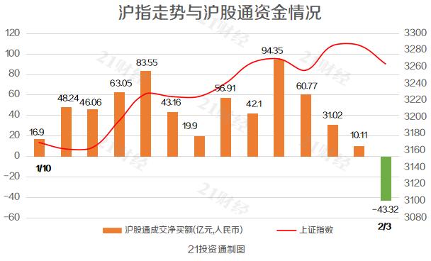 北向资金结束了连续17日净买入,全天净卖出42.46亿元,其中沪股通净卖出43.32亿元,深股通净买入0.86亿元。