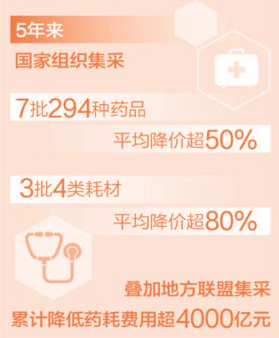 据介绍,2018年国家医保局组建以来,持续挤压药品耗材虚高价格水分,国家组织集采7批294种药品平均降价超50%,3批4类耗材平均降价超80%;叠加地方联盟集采,累计降低药耗费用超4000亿元。使用集采品种高质量药品的患者比例从50%提高到90%以上。在广大参保群众获得感持续增强的同时,药品“带金销售”的空间持续被压缩,越来越多药品生产企业走上重创新、重质量的发展新路。