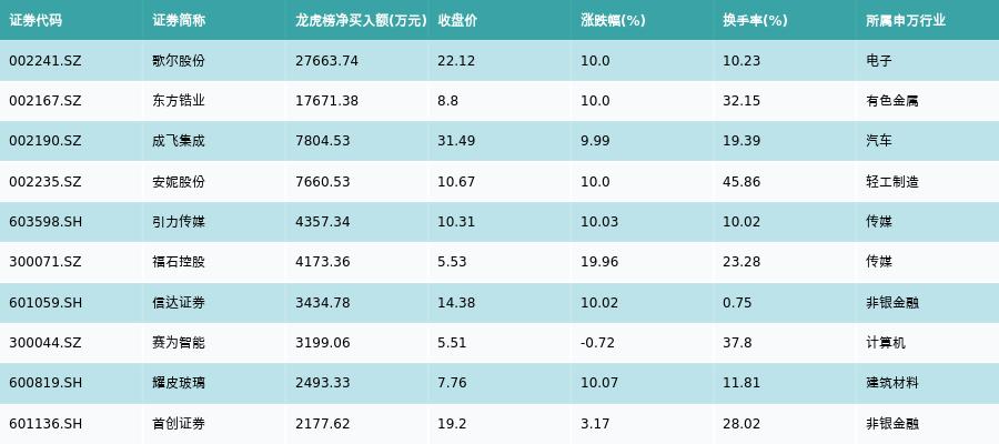 2月3日,龙虎榜营业部净买入额前10详情见下表: