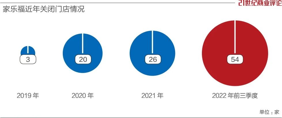 2022年前三季度,家乐福中国没有新开门店,关闭门店54家,包括多家营业超过20年的老店。