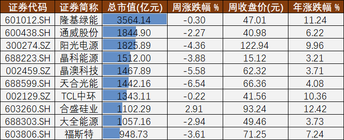 编者按:《光伏A股周报》旨在记录、评述A股光伏板块和龙头企业的一周行情表现,总结影响行情表现的关键因素,任何观点不构成投资建议。