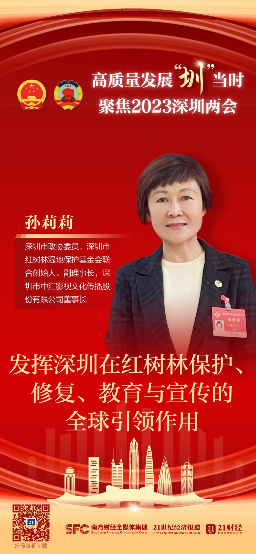 “深圳作为国际化大都市、改革开放最前沿,丰富的红树林资源、完善的政策体系、充足的高端人才储备,以及全民参与志愿活动的社会风尚,都可为国际红树林中心的落地提供强支撑。”深圳市政协委员,深圳市红树林湿地保护基金会联合创始人、副理事长,深圳市中汇影视文化传播股份有限公司董事长孙莉莉在接受南方财经全媒体记者专访时表示。