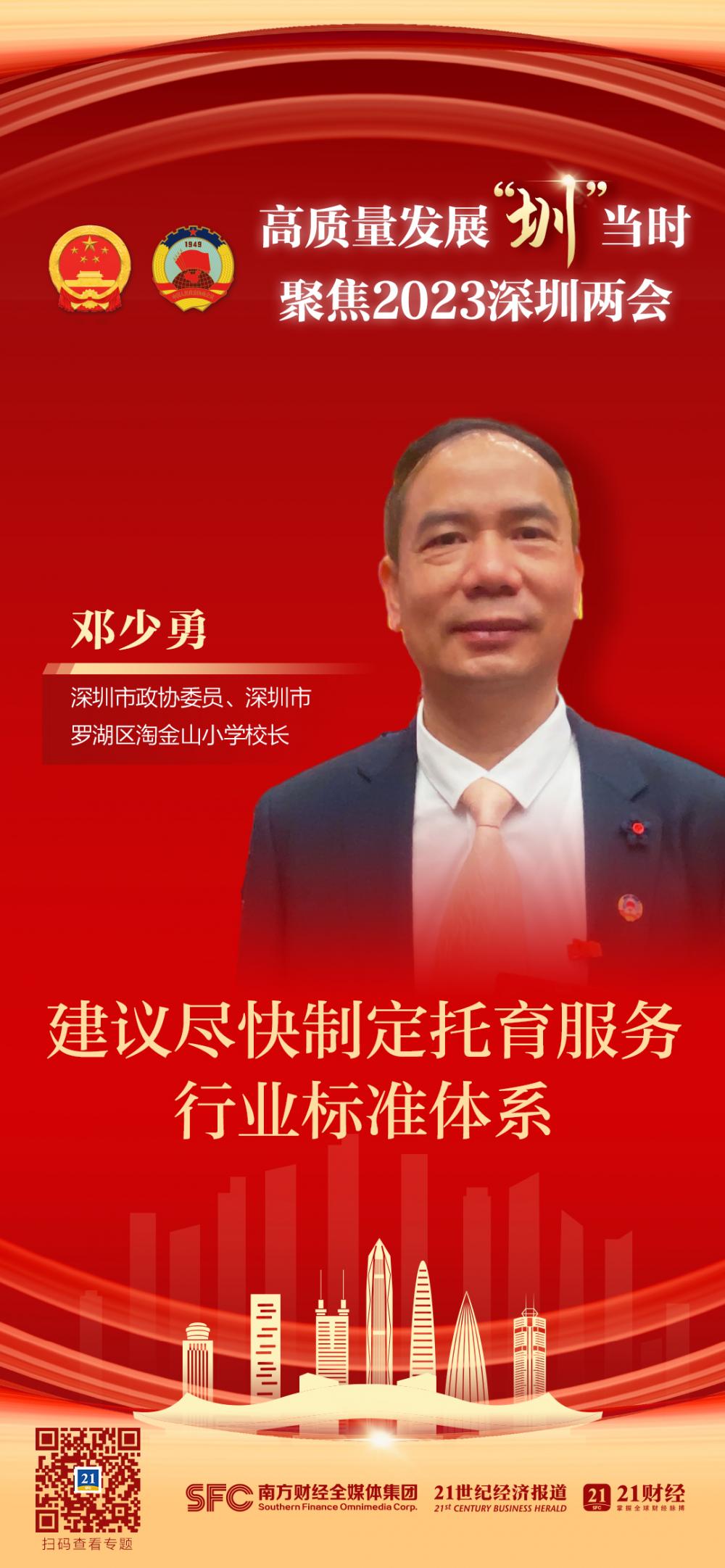 南方财经全媒体记者吴治聪 深圳报道 在今年的深圳市两会期间,深圳市政协委员、深圳市罗湖区淘金山小学校长邓少勇带来《关于促进我市托幼服务行业高质量发展的建议》和《关于解决我市幼儿园近视防控工作困难的建议》两个提案。
