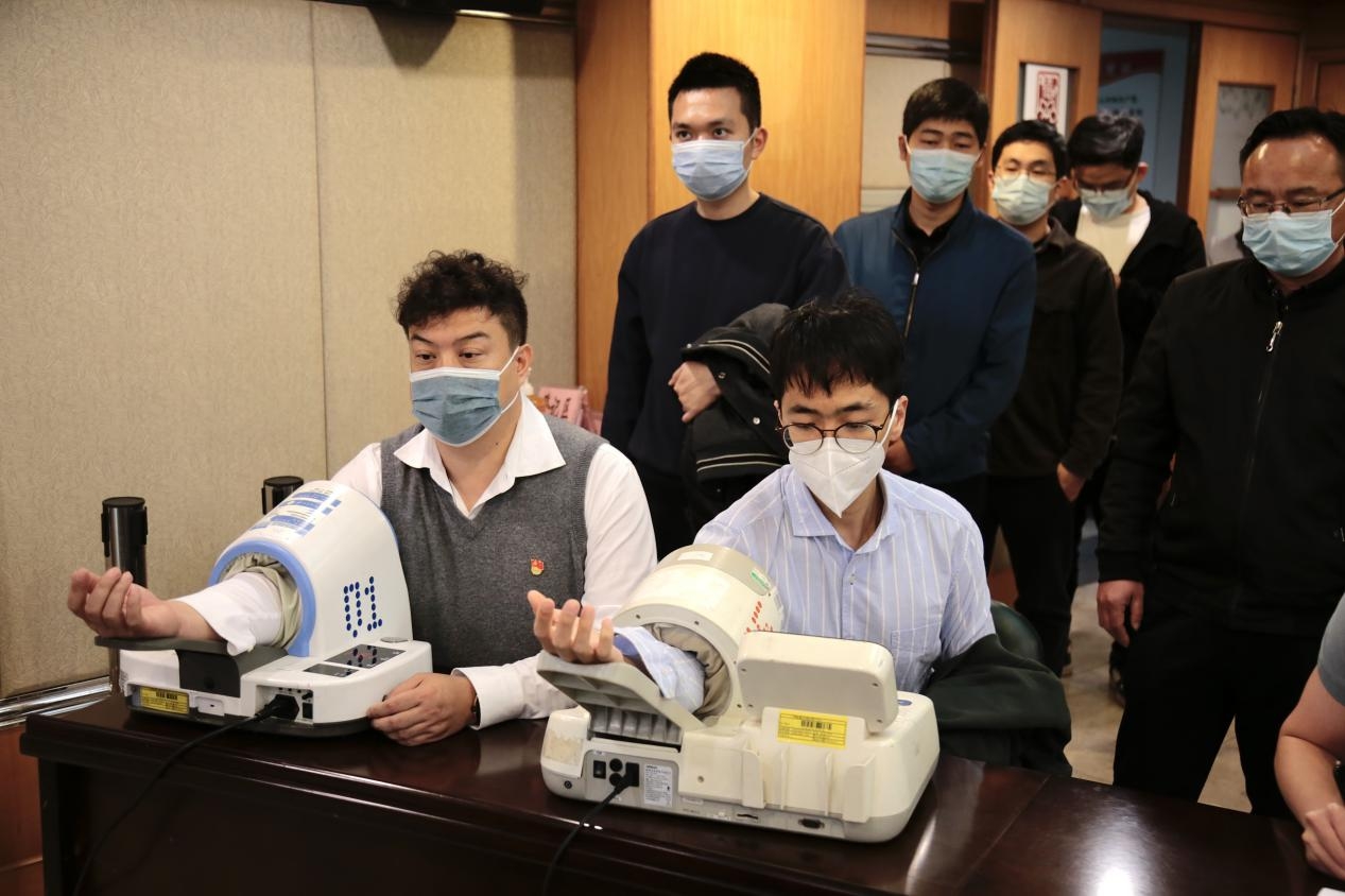 活动现场秩序井然,在医护人员的指导下,参与献血的干部职工依次进行信息登记、测量血压、血液检测、采血等程序。