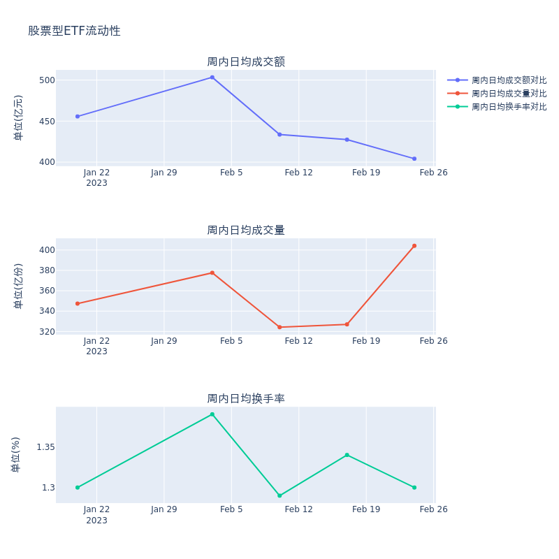 流动性方面,上周股票型ETF市场日均成交额减少5.4%,日均成交量增加23.6%,换手率减少0.04%。