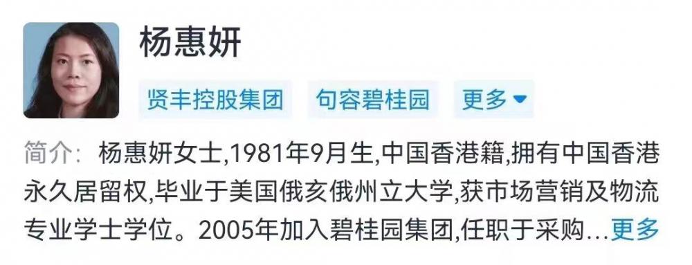 2005年,25岁的杨惠妍刚毕业即加入碧桂园,2006年获委任为执行董事。