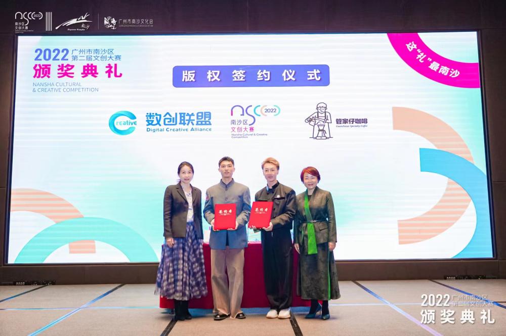 3月3日,2022广州市南沙区第二届文创大赛举行颁奖仪式,赛事主办方广州市南沙文化会会长郭晶晶现场出席活动。仪式上,南沙文化会与南方文化产权交易所(简称“文交所”)达成战略合作,赛事作品在文交所旗下数创联盟平台上架并生成有效的区块链数字作品凭证,当晚即成交了首笔数字作品合作交易,成为了大赛作品实现数字化并成功落地的重要里程碑。