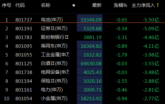 另一方面,电池(申万)、证券Ⅱ(申万)遭主力资金净流出超5亿元。