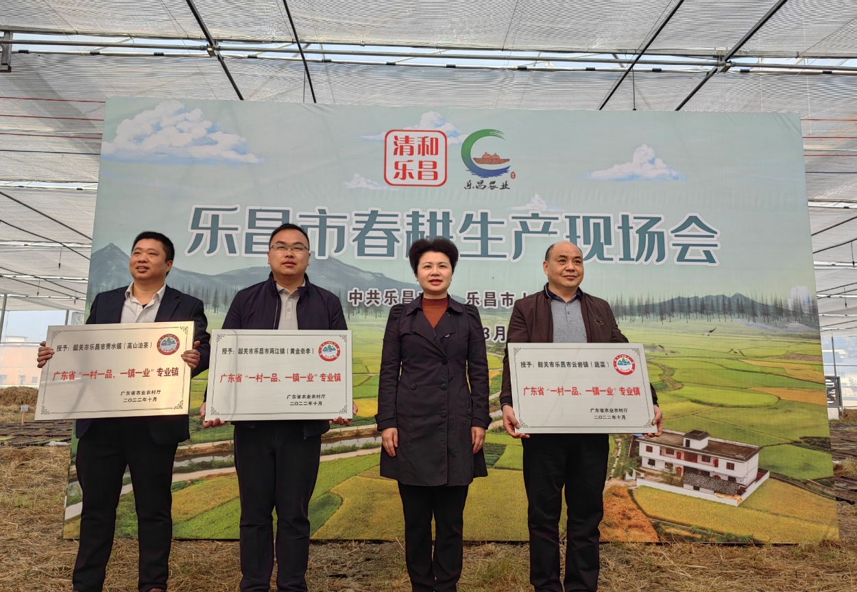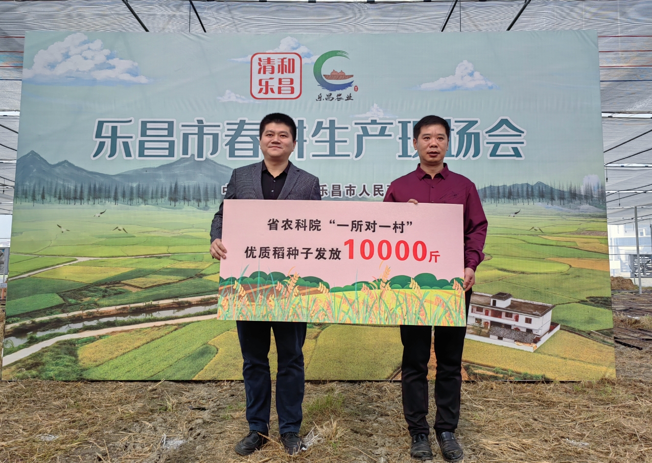 会议对乐昌市认定为2022年省级“一村一品、一镇一业”专业村、专业镇的3镇5村颁发了证书和牌匾。省农业科学院向廊田镇进行了“一所对一村”捐赠,共捐赠优质稻种子一万斤。