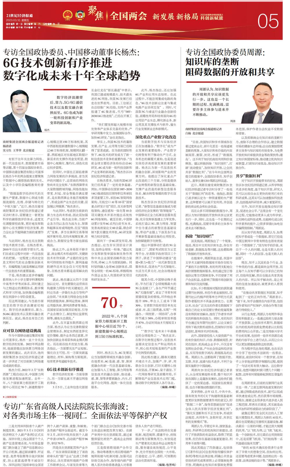 专访全国政协委员、中国移动董事长杨杰:6G技术创新有序推进 数字化成未来十年全球趋势