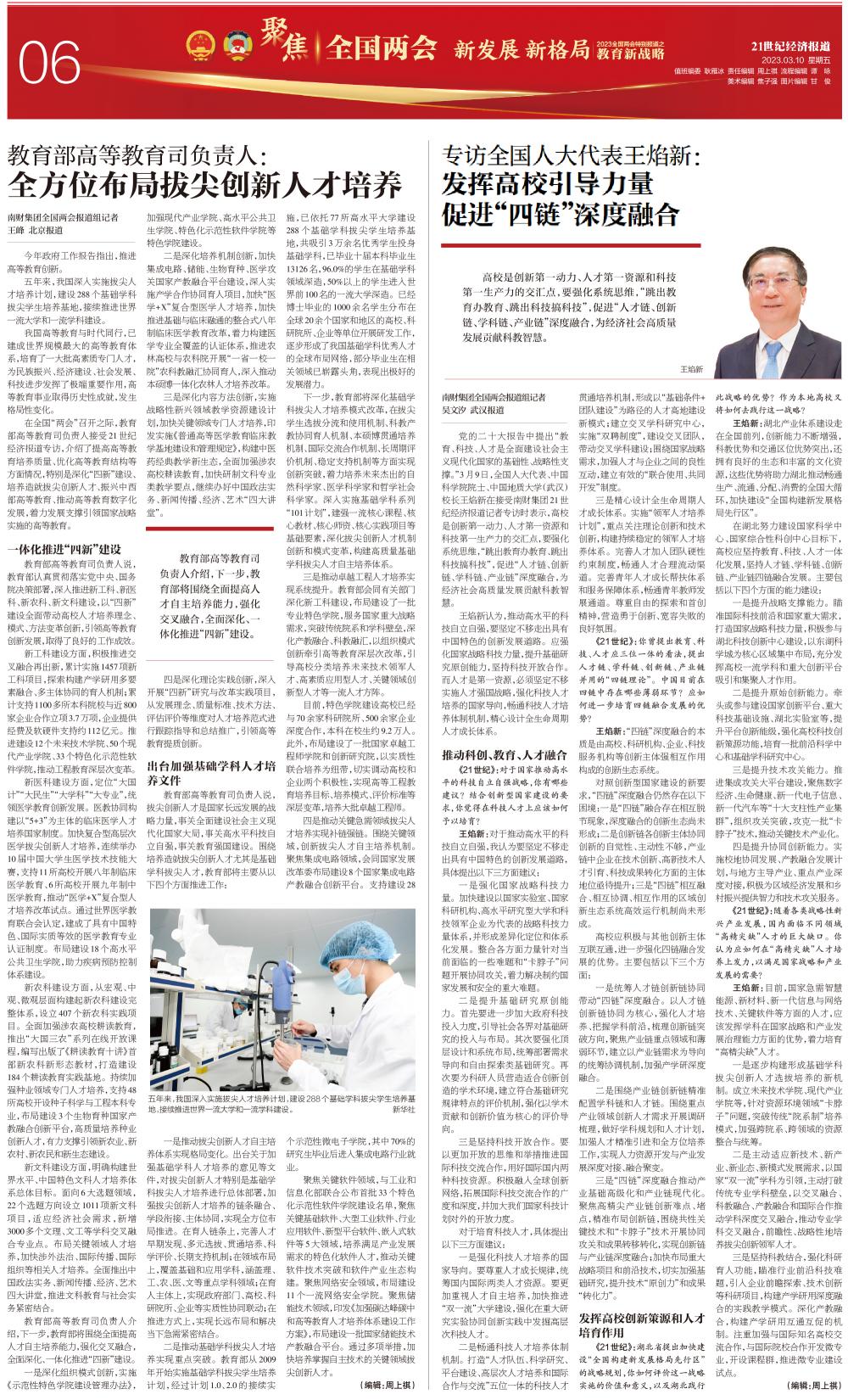 专访全国人大代表王焰新:发挥高校引导力量 促进“四链”深度融合