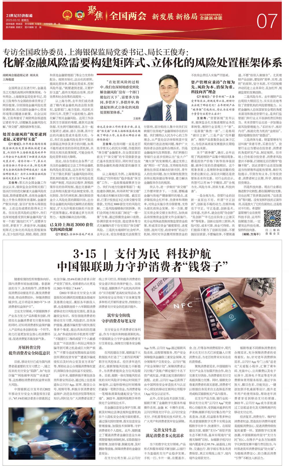 专访全国政协委员,上海银保监局党委书记、局长王俊寿:化解金融风险需要构建矩阵式、立体化的风险处置框架体系