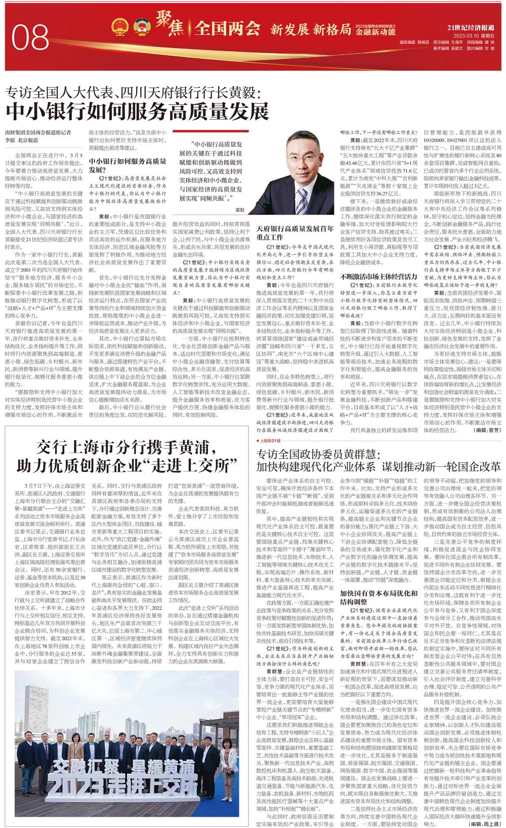 专访全国人大代表、四川天府银行行长黄毅:中小银行如何服务高质量发展