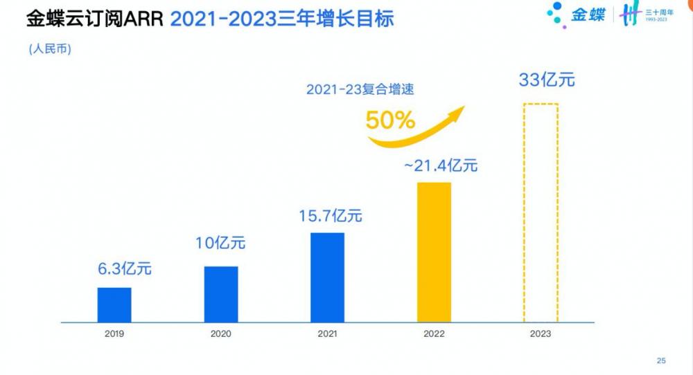 “收官之年要保持50%的复合增长率,争取实现云订阅营收33亿元,再造一个金蝶。”章勇说。