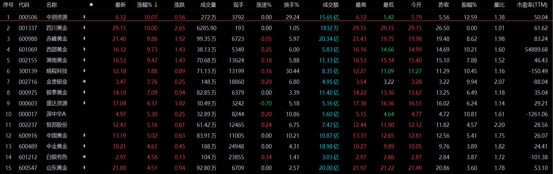 另外,值得注意的是,A股黄金概念板块也同步飙涨。板块内,中润资源、四川黄金10CM涨停,赤峰黄金、西部黄金、湖南黄金涨超9%,晓程科技、金贵银业、银泰黄金等多股跟涨。
